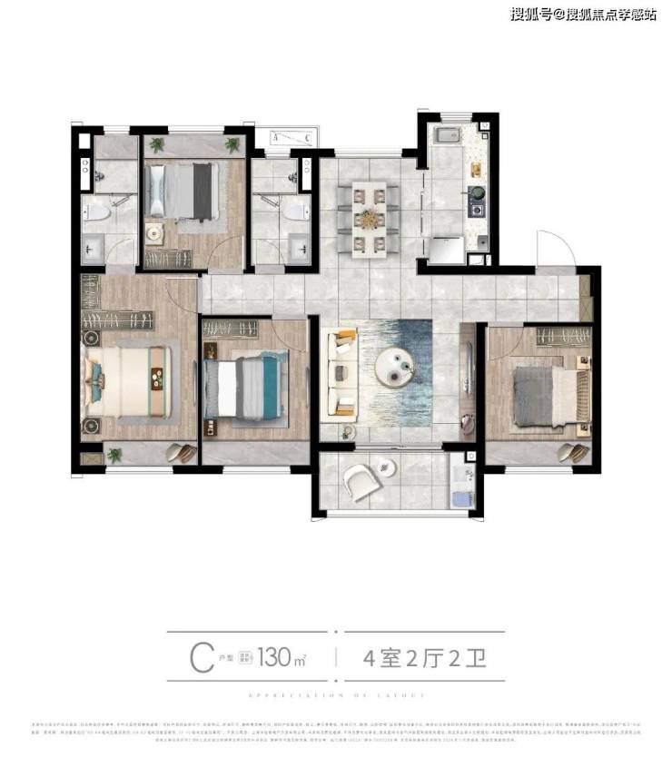 中企誉品银湖湾 售楼处预约热线☎:400-8080-420✅✅建面约130㎡的4房,4开间朝南,户型方正,南北通透,1梯2户,每个卧室都带飘窗,既延展使用空间,又优化了通风和采光。餐客厨阳一体化,动线流畅,大气开阔;主卧套房设计,总价约700万起。