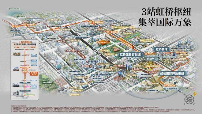 与大虹桥-重固向前进程共振,烫金示范区线在重固设站,距离项目约600米,3站虹桥枢纽、5站华为基地、7站张江,一线串联高能级科创产业高地、长三角一体化示范区等城市重要发展节点,途径科创总值突破千亿级。(信息来源:上海地铁示范区线站点线路图、新华社)