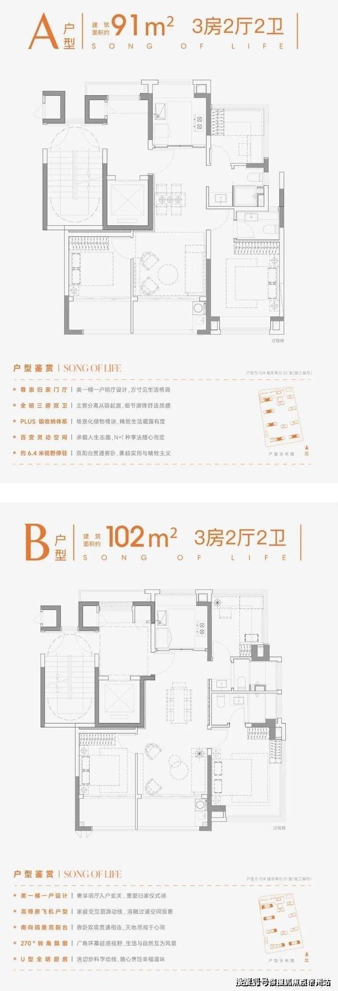 120套+主力约91-102㎡3房户型总价约298-415万