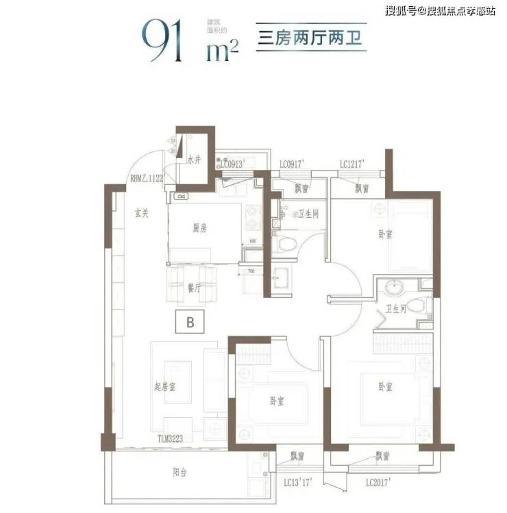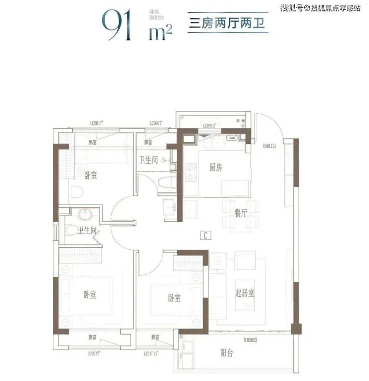 建面约91㎡-121㎡ 3房2厅2卫;这几个户型都是3房的设计,满足想一步到位的购房者。3开间朝南+客餐厅连通阳台+全卧室飘窗,以及套房式主卧设计+2卫,即使是三代同堂,也能让生活从容。