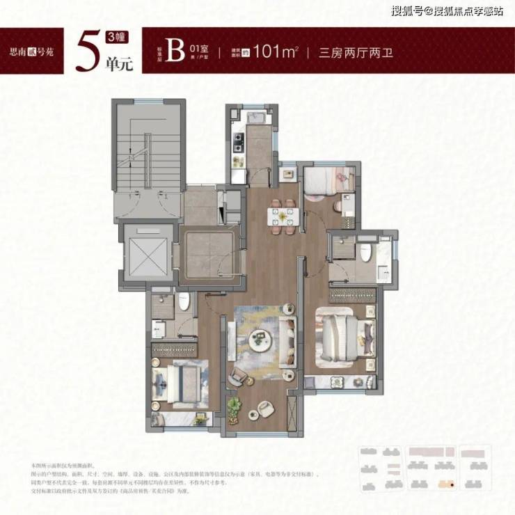 建面约100-101㎡户型,拥类独立电梯厅,无连廊+飞机户型南北通透。