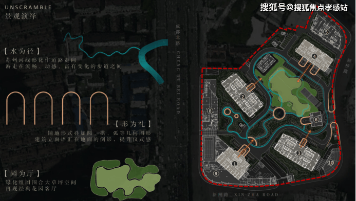 并借鉴海派大都会园林的的摩登、精致、艺术、惬意之精髓,以水为径、以形为礼、以园为厅,打造情景交融的塔尖圈层社区场景。