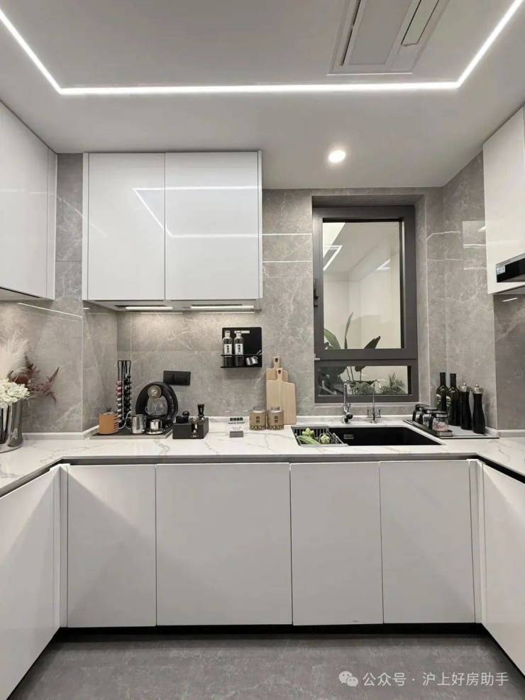 厨房空间,甄选西门子新款的抽油烟机、灶具、洗碗机等,甚至连大部分项目不配备的冰箱也是交付标准;还特别配置了轨道插座、前端净水器和凉霸;吊轨金属玻璃移门,既美观又方便清理。