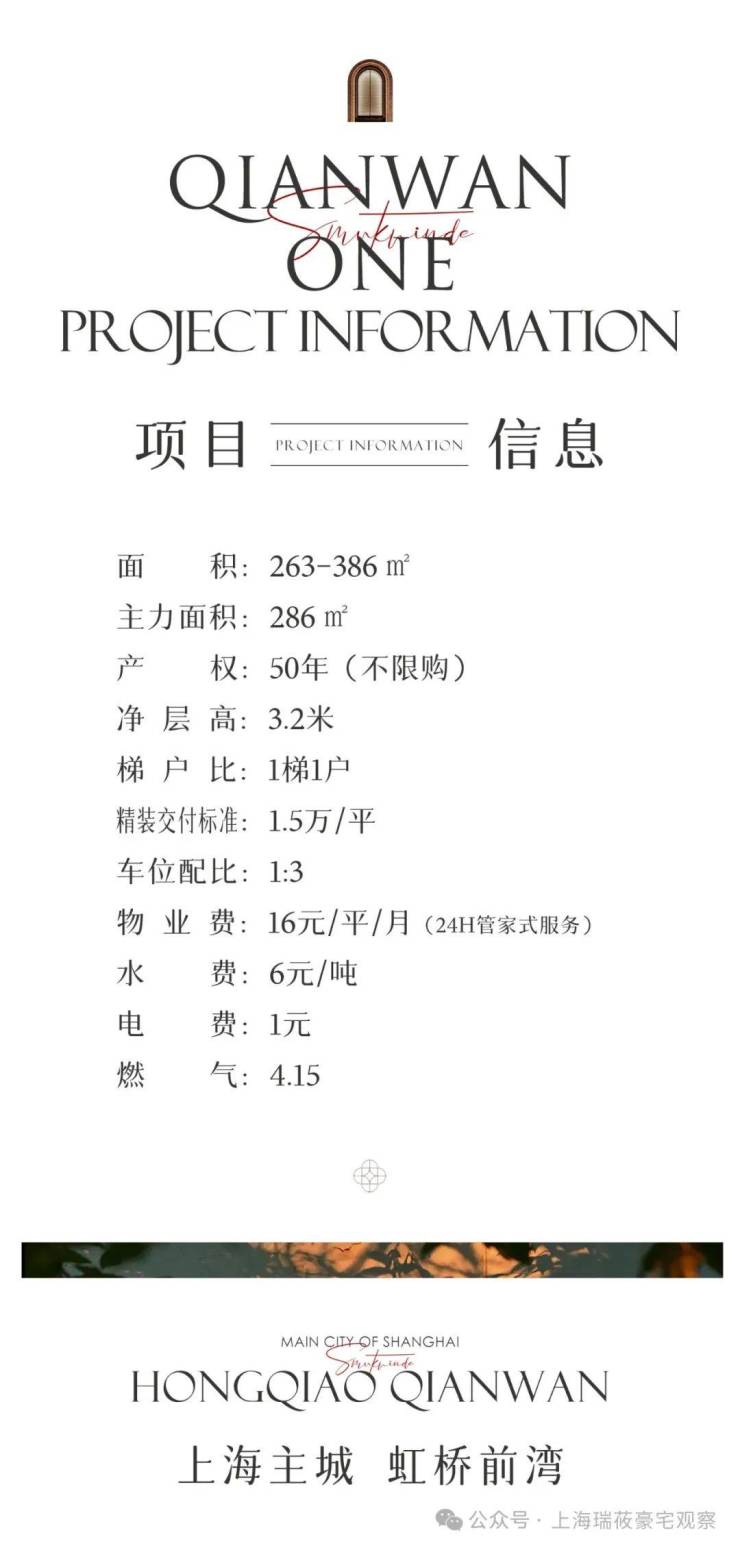 虹桥前湾精装公寓「前湾壹号」推出263-386平!一梯一户!不限购通燃气!样板间已开放,私信小编线上预约制看房。