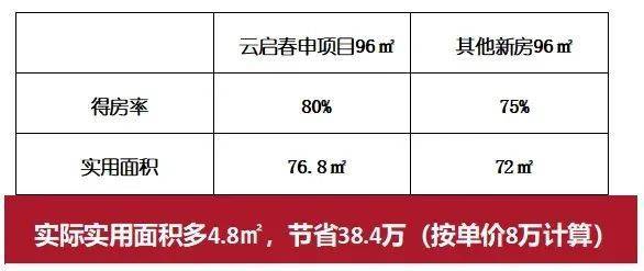 土地价值飙升,产品力更硬核!中企·云启春申以约80-82%超高得房率,碾压市面同类产品,约等于总价立省40万。