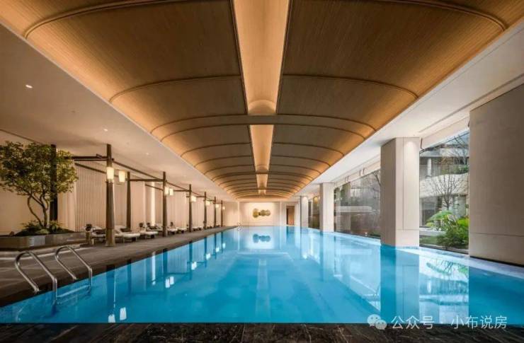 最让我心动的是这个无边泳池! 招商序以 “室内外自然无界”的设计手法,将无边泳池与庭院美景在视觉上连成一体,当阳光映照跃动的蔚蓝,业主畅游的同时还能包揽庭园诗意;深色木架构撑起白色帏幔,池边躺椅的设计也极具豪华酒店的优雅与尊贵,穹顶则延续着海派穹顶的经典设计元素,以细腻的木纹铝板打造。 以往只在奢华度假酒店的体验在家楼下的会所也能拥有!