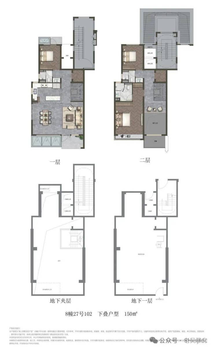 叠加别墅:141m²、150m²上叠,150m²、160m²下叠;