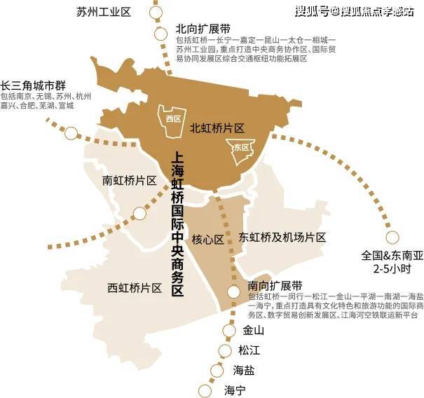 上虹桥依托东西两个片区(西居东产,共计约167公顷),整体打造创新经济集聚区、中央商务配套区和高品质国际化社区。