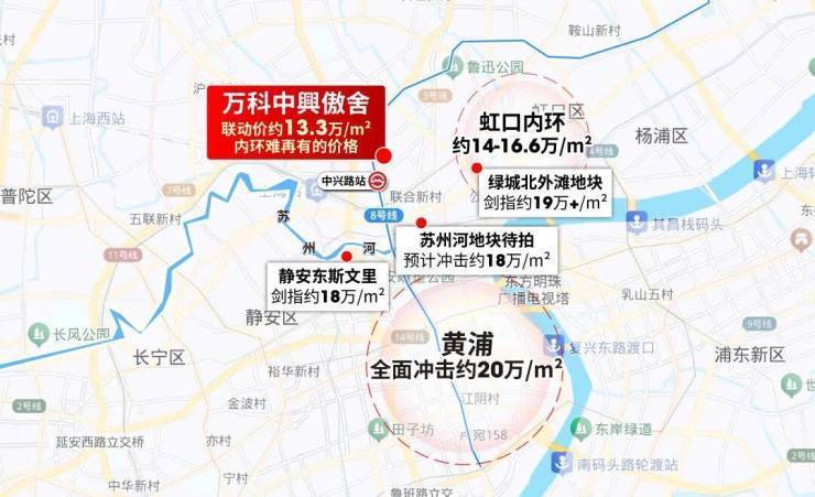 同样内环北区,虹口新盘14-16.6万/㎡,北外滩地块预期19万+/㎡。