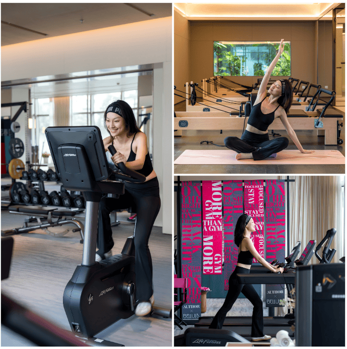 女性友好健身房配备专属器械、补妆间和心理理疗室,未来瑜伽课、塑形训练可随时预约,美学与实用融合。