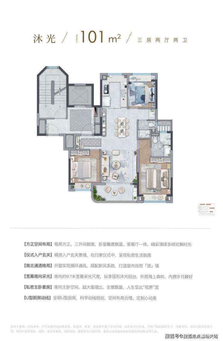 除此之外, 户型三开间朝南、南北通透、主卧套房设计、全卧室带飘窗、客厅☑️☑️国贸海屿佘山售楼处电话:400-9966-940☑️☑️阳台约270°超大采光面等户型优势全部具备,这可能是上海目前低总价上车的更好户型了。
