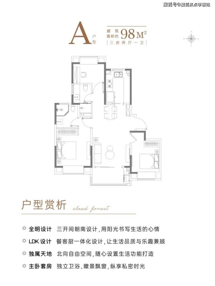 A户型 建面约98㎡3房
