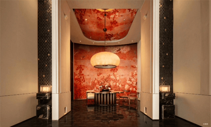 无论当代「艺术大堂」以上海市花白玉兰为主题,采用国家级非遗大漆工艺,层层髹涂,呈现深邃如釉朱红色的海鸥丽晶同款“漆彩丹青”背景墙;“灯影玉兰”艺术装置亮起时,幻化玉兰花形,暗香浮动间,诠释的东方艺韵;