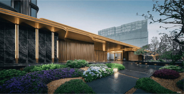 复刻巴厘岛阿丽拉酒店落客仪式与度假感,璞元开创了上海最长的140m酒店式门头,从商业街角一直绵延至社区门庭,不止实现归家从:“都市喧嚣”到“隐逸谧境”的巧妙过渡,入口整体约1.4m社区抬高,更宛如在瑞虹托起一颗“掌上明珠”,带来”极致的静谧感“和”抬升的领地感”。