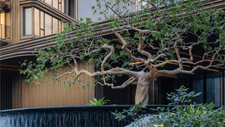 其将百年的名木、千年的璞玉、亿万年的奢石集萃于此,只为让人漫步每一处场域,时刻感到一种“璞而不喧”的隐贵感和返璞感。每样材质本身就拥有贵的底气,而不是包装的堆砌,这才是回归本质的奢华。