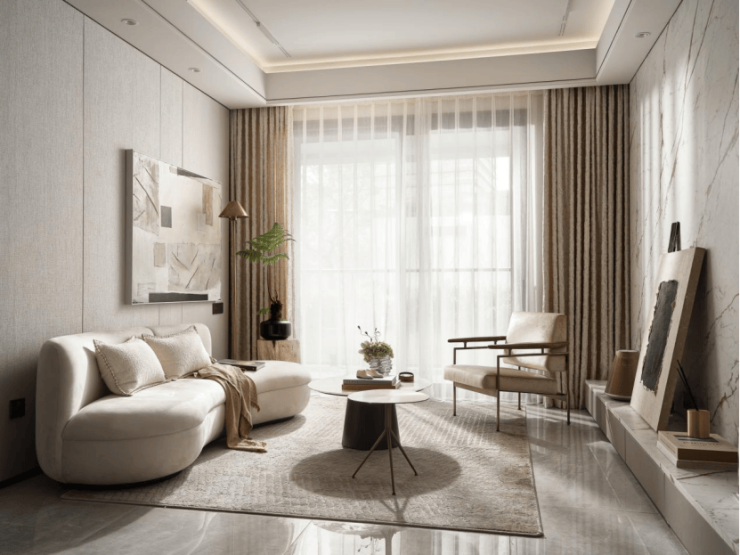 电视背景墙选用带有东方意蕴的万里河山石材,颜值超高!