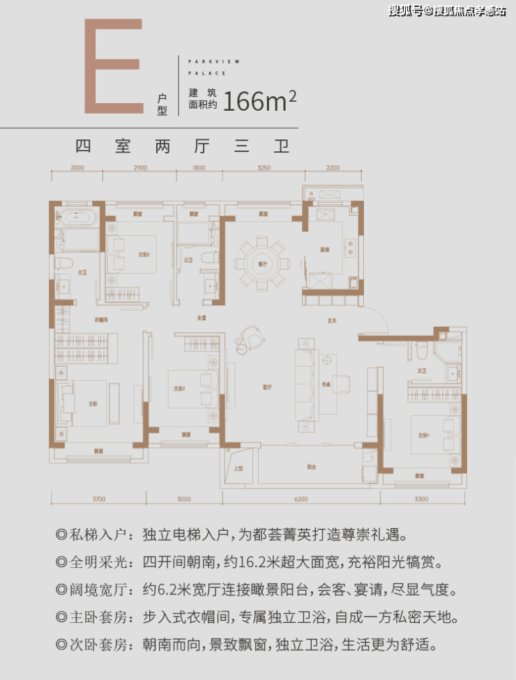 【佳运·瑞璟湾】售楼处电话:400-885-5420✨✨建面约166㎡奢境户型,南向四开间面宽可达约16.2m,约6.2米宽