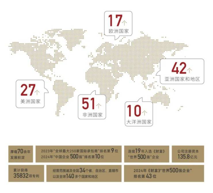 作为全球特大型综合建设集团之一,它位居2024年《财富》世界500强第43位,已连续19年跻身这一代表全球企业顶尖实力的榜单。