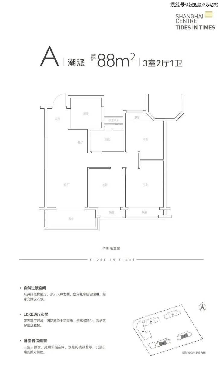 ✪✪涌潮府售楼处电话✅✅:400-9966-940☃️☃️建面约88㎡3房产品,3开间朝南+3飘窗+宽阳台的3房设计,在保证实用性的同时,也让室内的通风以及视野都做到了更好。