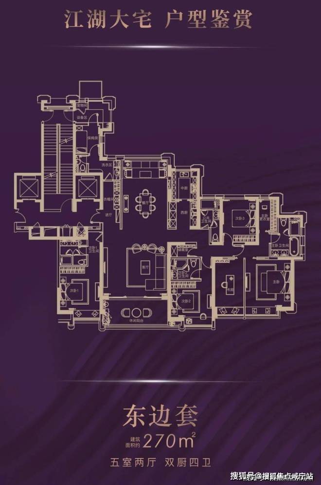 270平做了5室2厅4卫2厨,卧室基本都是带卫生间的套房、还配了一间保姆房。