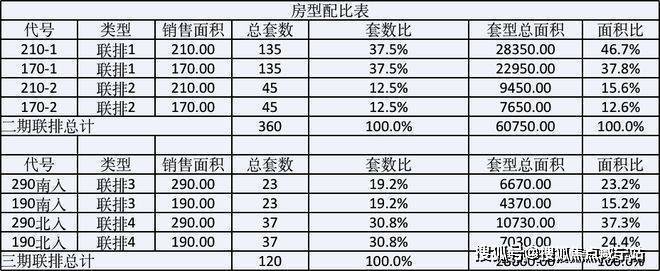 户型分布如下,建面约170-290㎡