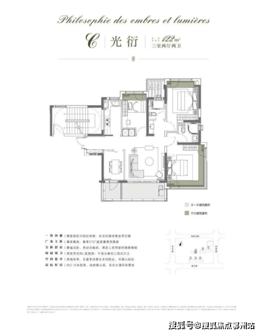 项目以116㎡户型为起步,纯粹改善型社区,所有户型都做到了约3.15米的层高,