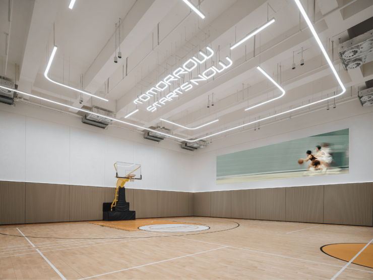 新盘罕有的「室内篮球场」,这单是一处先锋独到的场景搭建,专业级枫木地板搭配超7米室内层高,更为全龄乐活群体,围合出了一方在家楼下就能“拿球说话”的竞技场!