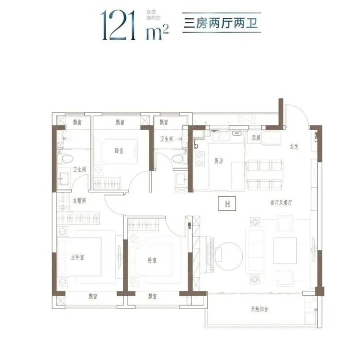 户型特点:阳光三房,同等面积更多功能;宽幅南向观景阳台,把居住变成风景;步入式衣帽间,给予生活更多从容。