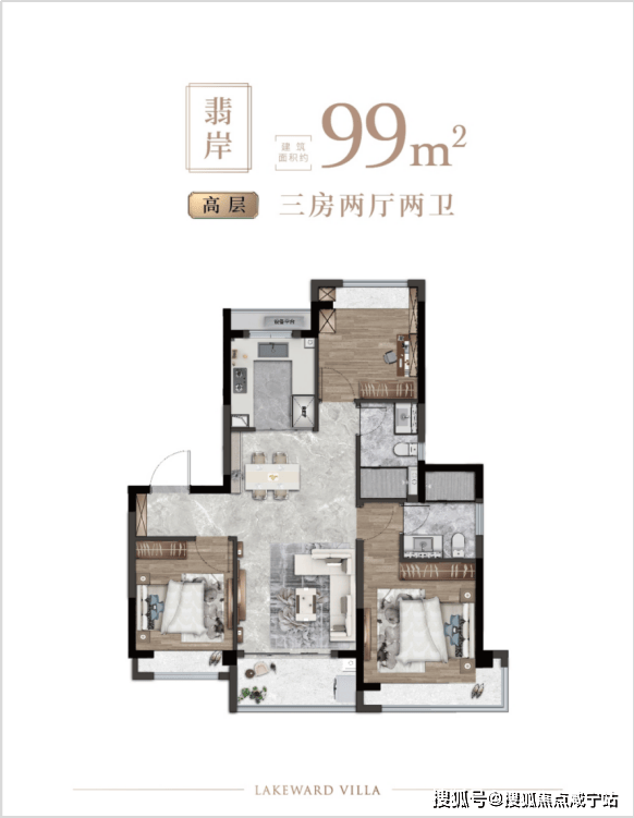 主力户型为120-140㎡的三房两厅,配备独立厨房、开放式客厅及大阳台,满足家庭日常需求。部分户型还设计了书房或亲子房,提升居住舒适度。
