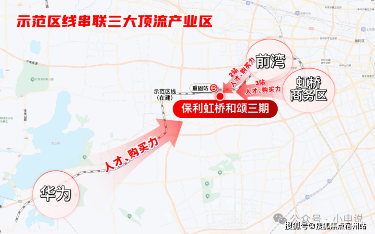 另一方面,示范区线串联 长三角一体化和 大虹桥两大国家级战略;同时又紧密 华为、前湾总部办公、虹桥商务区三大顶流产业,含金量之高可见一斑。