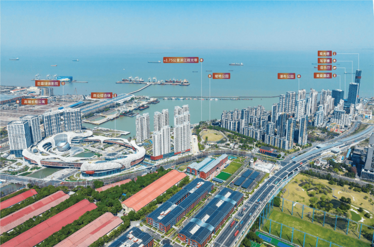 其中最具标志性的当属约18万方环形“江豚形状”大型商业中心,这一由中旅免税与上港集团联袂打造的超级商业体,将集精品奥莱、文化展览、亲子娱乐、高端餐饮于一体,预计2026年开业!未来更将引入免税购物场景,成为长三角区域“微度假”目的地。