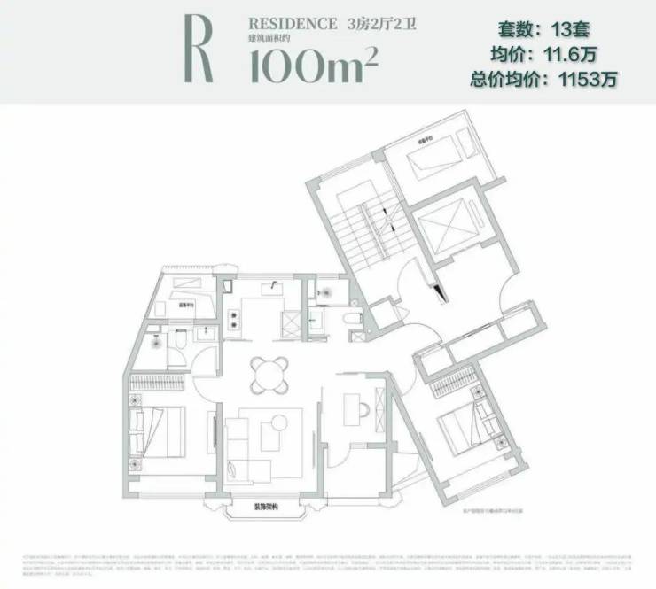 这是这个户型区别于其他项目百平米户型的最核心差异,资产安全垫非常厚。