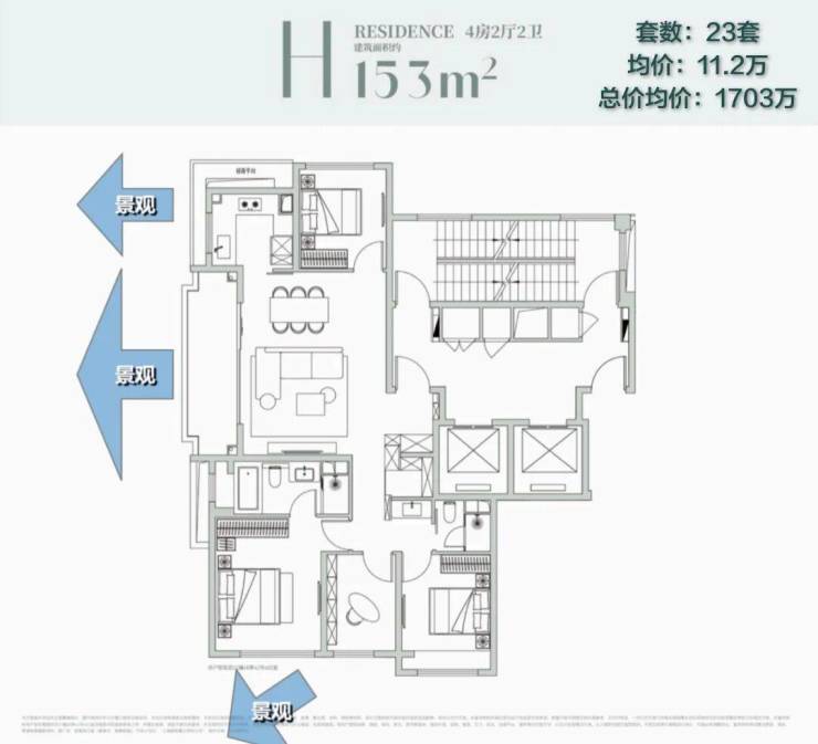 这个户型这次只开出来11.2万/㎡的价格是我完全没想到的,套均只有1700万左右,这个总价想在滨江核心段买一个150㎡+,还要兼顾景观、四房功能性的产品,目前我没有找到其他选择。
