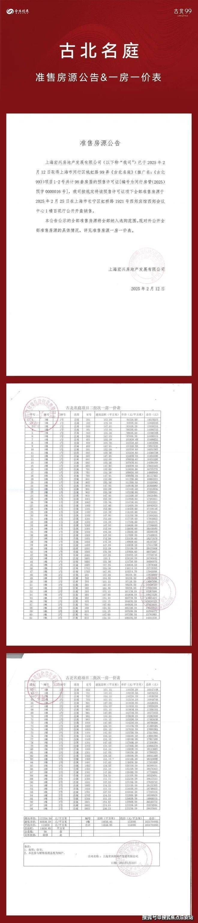 古北99营销中心热线400-8855-420📲(预约看房热线)最新消息,古北99火爆认购啦!古北准现房!约133-154m²2-3房,单价94000/平!最新一房一价表!