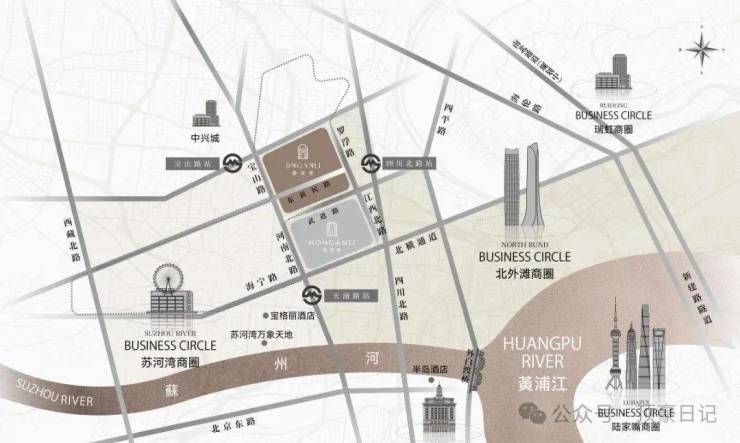 约叁公里范围内,汇聚苏河湾万象天地、北外滩商圈、南京西路商圈、外滩商圈、陆家嘴商圈等