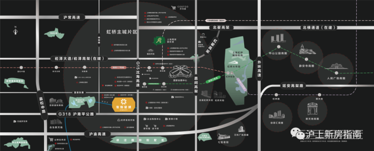 成熟的现代商业集群:虹桥食尚天地、希尔顿酒店等与项目仅一路之隔,距离项目1.5KM范围内,还有夏都小镇、永业购物中心等