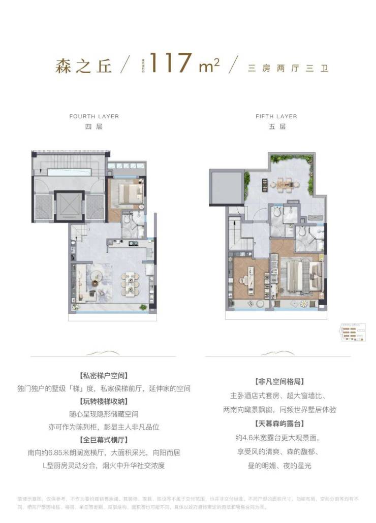 上叠户型自带顶层星空露台,凭栏远眺,美景一览无余,亦可举办露台烧烤、私人派对等,拾取生活中的热爱与乐趣,为自我留下一片宁静之地。