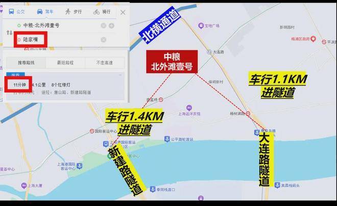 自驾也相当方便,项目往北方向就是北横通道,往南车行方向就是新建路隧道和大连路隧道直达浦东。从项目到陆家嘴、北外滩和外滩都很便利(百度地图测量)。