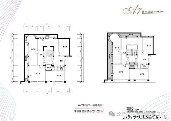布局:地上三层(4.5米层高)+地下一层(6.2米层高)+900㎡花园