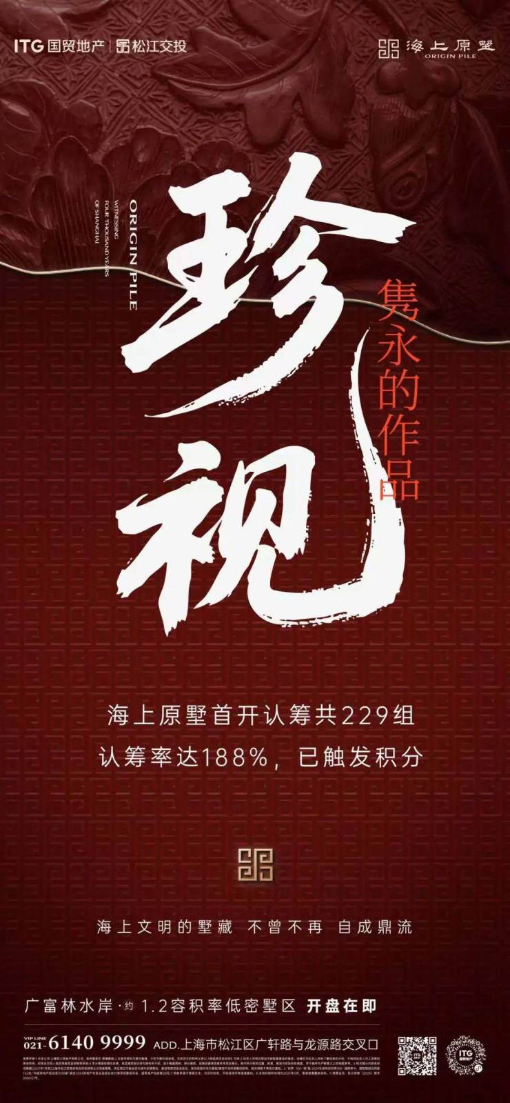近日,松江广富林墅居标杆「国贸海上原墅」一批次首开入市,累计认购229组,认购率188%,并触发积分!