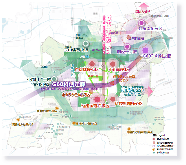 一个区级商业中心节点:印象城MEGA(二期在建)与广富林遗址特色商业融合;