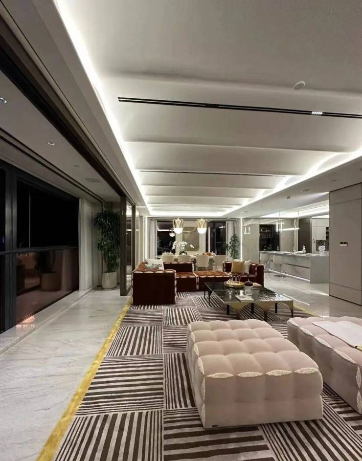 同样是约3.6米的奢阔层高,朝南横向跨度超37米,会客厅面宽超18.5米!空间奢阔,全景玻璃幕墙,超270度环幕视野景观震撼!