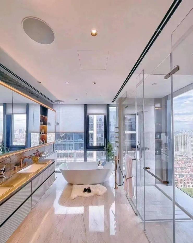 浴缸选用瑞士劳芬,水龙头、花洒选用意大利GESSI,每一处细节都彰显着奢适与品质!