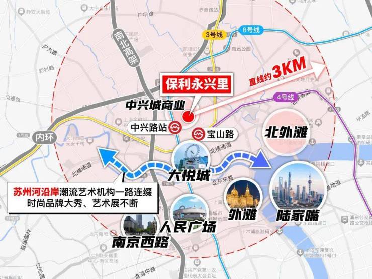 保利永兴里站位上海内环正中心,大规模城市更新+“一江一河”顶层规划+静安“一轴三带”战略+苏河湾功能区,直线约3公里浓缩一城之繁华!