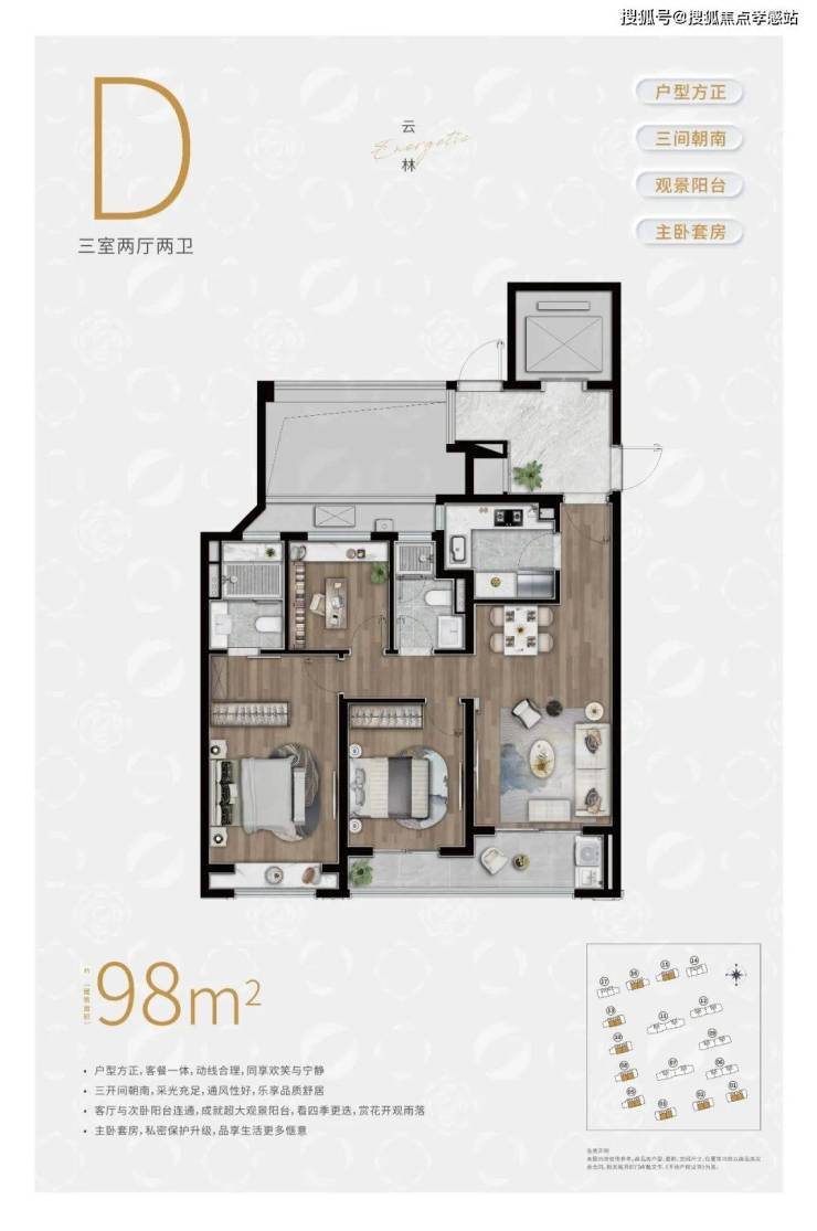 「陆家嘴锦绣云澜」售楼处电话:400-885-5420✨✨约98㎡的边套户型,南向卧室带阳台,整体的居住舒适度很高。另外,相比B跟D户型,C户型设计有专属衣帽间,让舒适生活从容舒爽。