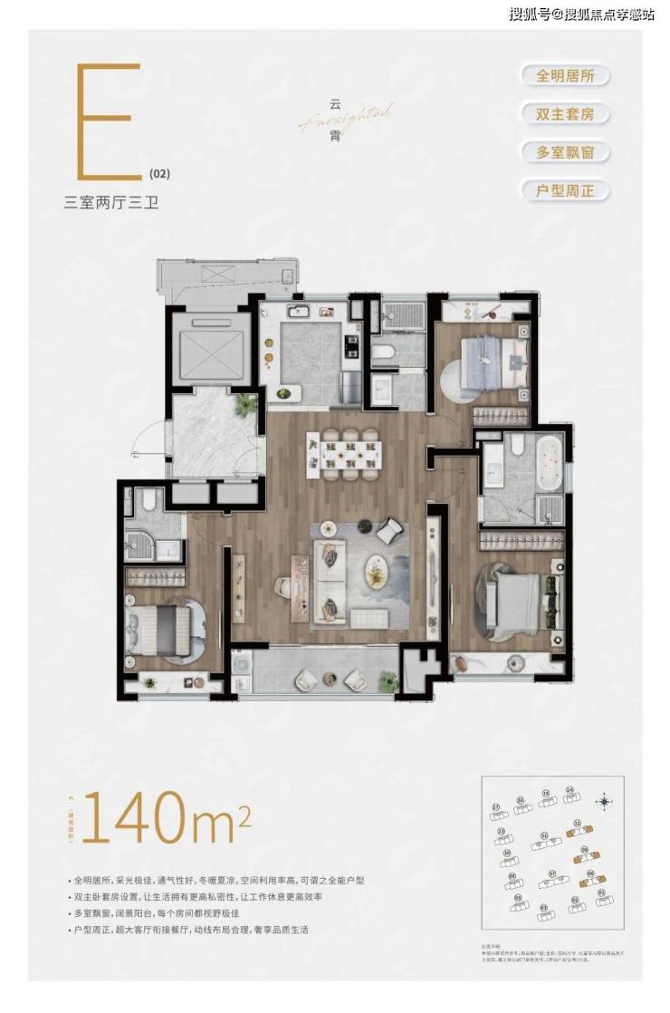 E户型:「陆家嘴锦绣云澜」售楼处电话:400-885-5420✨✨建面约140㎡3房2厅3卫▼