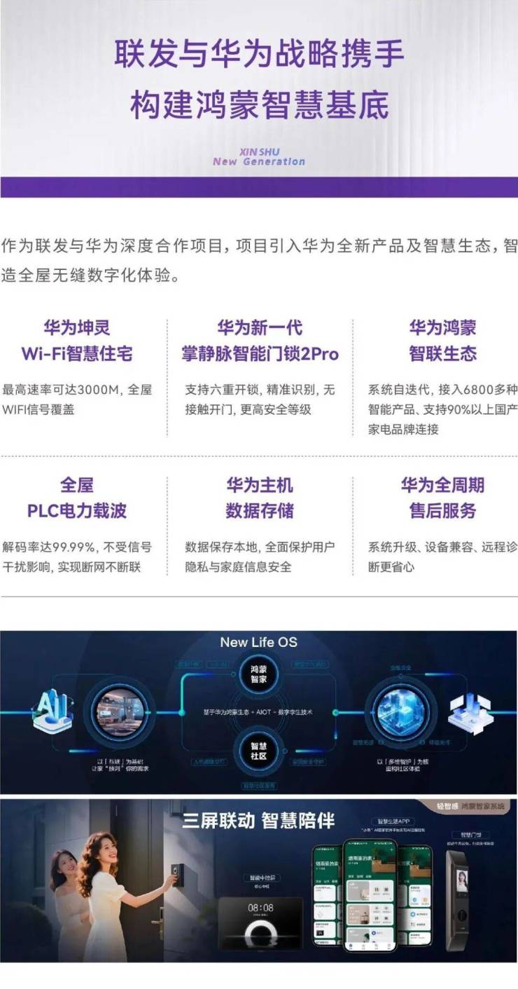 联发·时光新澍与华为鸿蒙智家深度合作,打造“New Life OS智慧社区系统”。