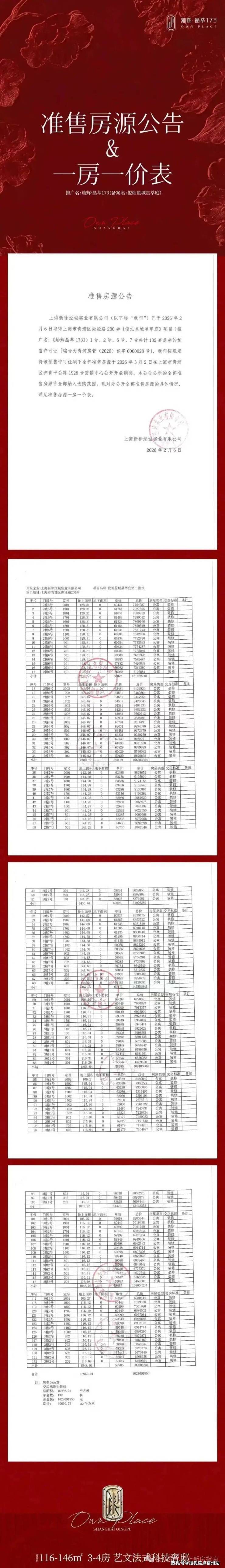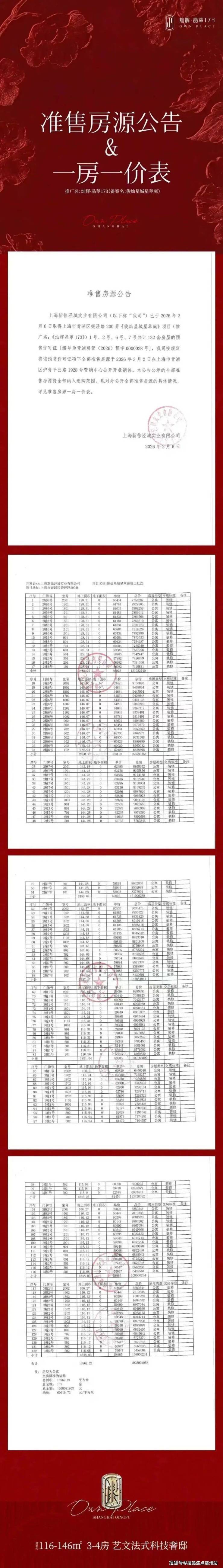 《楼市独家》最新消息: 大虹桥徐泾新盘【灿辉·晶萃173】,即灿耀星城四期项目,主力户型建面约116-146㎡3-4房,第二批房源已取证,2月8日开启认购,3月2日开盘!