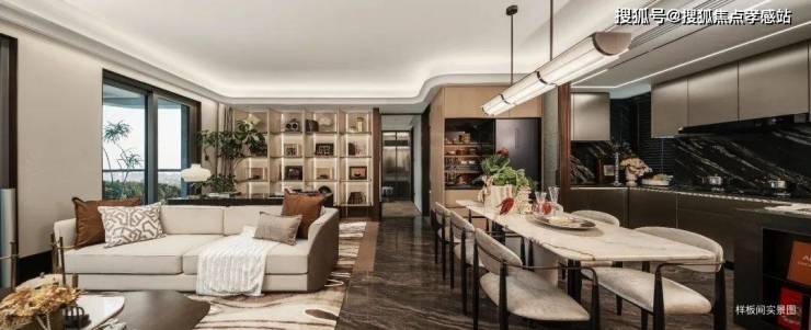 样板间同样把南书房打开,和客厅融为一体,形成了一个巨大的客餐厅空间.