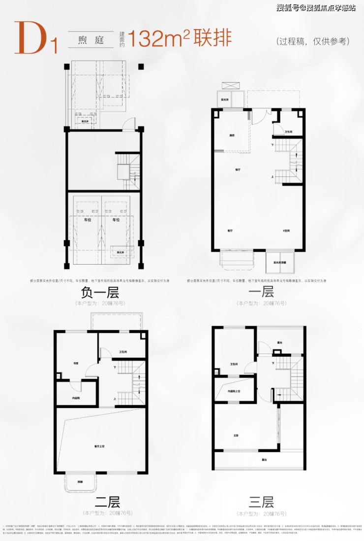 建面约132㎡的D1户型(联排)。乍一看,这是一个地下一层,地上三层的标准联排户型,从户型图上只能看到两个卧室。但仔细看的话,会发现许多令人惊喜的亮点~